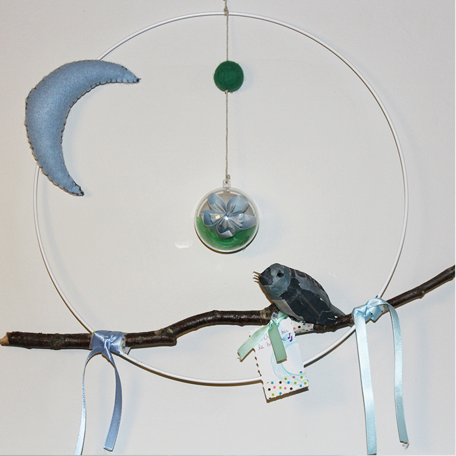 M’inspirant de l’univers des contes, des comptines et des berceuces, j’ai commencé à créer tous ces petits mobiles ludiques et poétiques…
